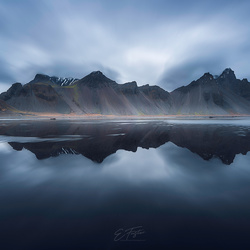 Long exposure at Stokksnes, Iceland. The sunrise didn't give us a beautiful light, so I decided to use the wind this day to get a long exposure in the sky and enhance the cold colours of this day.