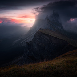 An incredible sunrise at one of the most stunning peaks in the world. I hiked to this location in the dark and watched the landscape reveal itself to me as the light slowly appeared and parted the clouds. An unforgettable experience.
