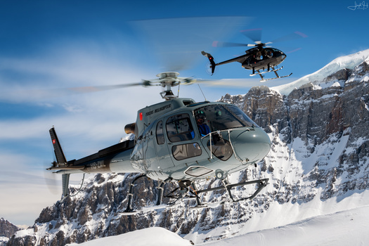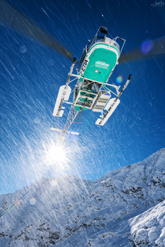 People seem to think that once you're in the air, getting the images is doddle; it's anything but, as you have to contend with the wind coming in from the open door as you're shooting, the vibration of the helicopter, and turbulence, all while you're shooting at between 1/80th-1/200th of a second. Then, of course, you have to position the subject so you're talking to the camera ship pilot who then relays that to the pilot in the other aircraft.