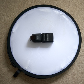 In terms of usability, the Sundisc is as practical in application as any reflector. It pops up once you've uncoiled it. There is a small hole at the bottom you can slide the strobe into, securing it in place with elastic. This is sufficient for the purposes of keeping the two in place, and if you've got an assistant with you, then they can hold it in place. However, it does suffer from the same problem as any light modifier, namely one of stability.