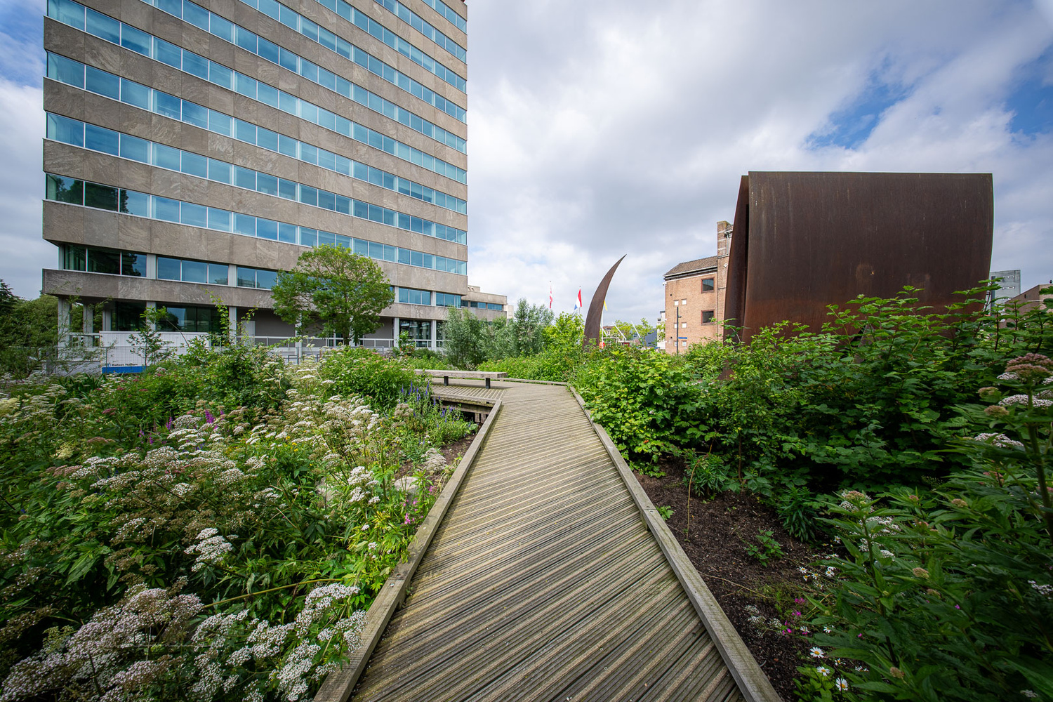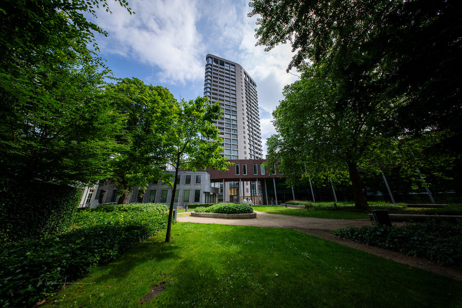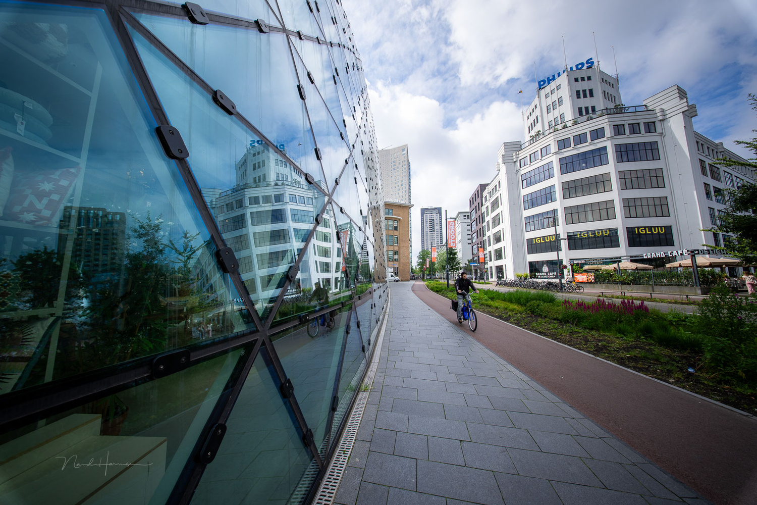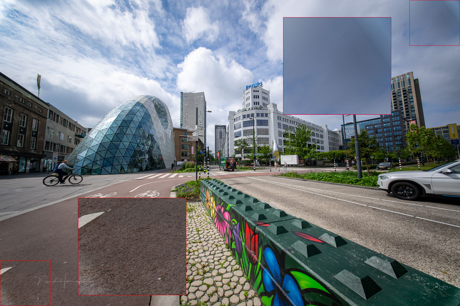 A focal length of 10mm will show a lot of perspective distortion. Pointing the lens upwards or downwards causes vertical lines to run to a vanishing point. You need to hold the lens perfectly horizontal to avoid this. If you do, vertical lines are almost perfectly vertical. That’s why this lens deserves the name Zero-D.