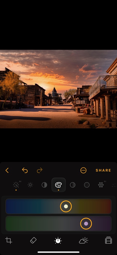 I found some useful skies that were included and started my usual Luminar Neo routine, using my iPhone 15 Pro Max instead of my laptop. The tools I use a lot on my Mac were there, even the relight tool I find very valuable.