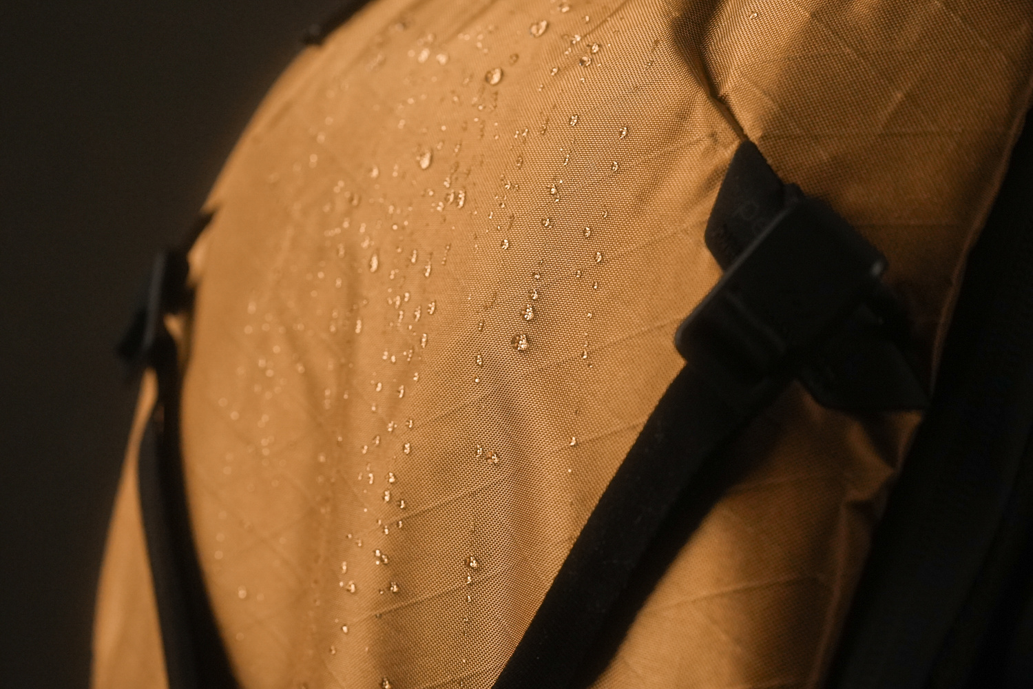 Up close, there is a visible difference in the texture of the exterior of the bags. The older version has a smooth surface throughout, while the Coyote versions with the X-Pac VX21 have a criss-cross pattern. In addition, it uses C0 Durable Water Repellent (DWR) compared to other types of DWR that have perfluorinated compounds (PFCs) that are biologically persistent and can be toxic to some organic life. C0 DWR exists without such fluorinated compounds, making the process of creating weather-proof bags (and even refreshing the coating) not harmful to the environment.