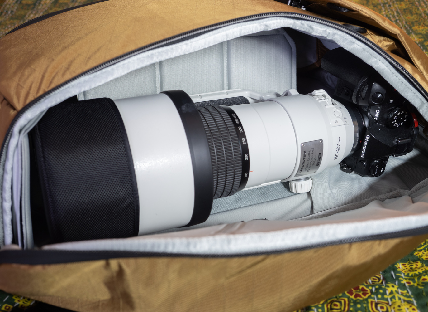With the rearrangement of the adjustable Flexifold organizers, I could easily organize and pack both of my OM-1 cameras with their 12-40mm and 40-150mm lenses attached, and there was plenty of space for my waterproofs and lunch pack with room to spare. I could even use it with my larger 150-400mm lens and still have room for my other gear. Somebody walking with a full frame 35mm behemoth of a camera and a long lens could also comfortably use this bag and carry a tripod too.